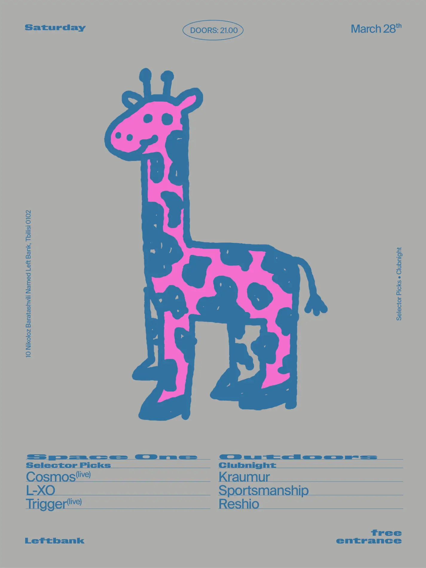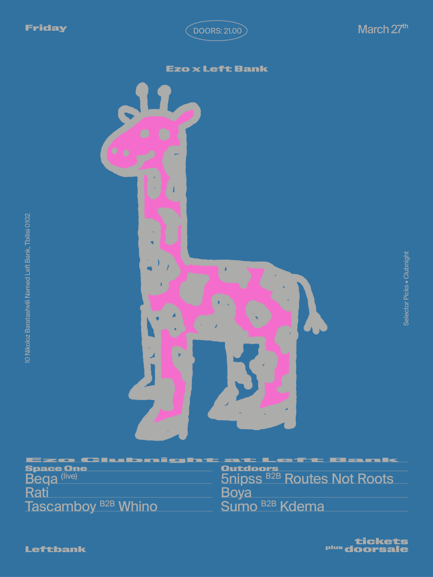 ✦ Friday's Clubnight at Left Bank on March 20 opens in Space One with two local selectors and live performances from Welsh improviser Elvin Brandhi and Lila Veil. From midnight, Outdoors features London-based Jos from EYA Records, Left Bank crew member Ash Scholem (Transfigured Time co-founder), and Dali, who draws on Tbilisi roots and production work spanning Fantastic Planet to De Rio.